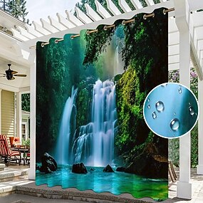 Tenda da esterno a 2 pannelli per la privacy impermeabile, tende scorrevoli per tende da patio, occhielli per tende per pergola paesaggio forestale 3d per gazebo, balcone, veranda, festa