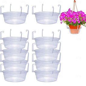 10 cestini rotondi trasparenti in plastica da appendere con sottovaso, vassoi per piante sospese con ganci integrati e raccoglitori d'acqua, adatti per uso interno ed esterno, ideali per gli