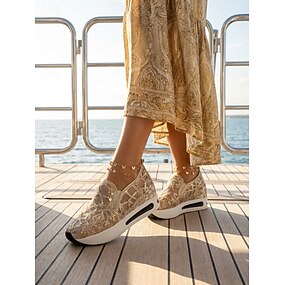 sneakers slip-on da donna in rete con paillettes dorate e suola con plateau - scarpe casual eleganti per feste e occasioni speciali