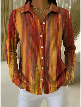 Per donna Camicia Camicia a nido d'ape Camicia casual Bottoni Grafico Elegante Vacanza Vintage Manica Lunga Top lunghi Quotidiano All'aperto Abbigliamento casual alla moda Bianco e rosa Giallo