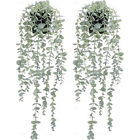 2 piante di eucalipto artificiali da appendere in vaso per parete, camera da letto, casa, patio, decorazione per interni ed esterni, piante finte da appendere per bagno, cucina, ufficio, fattoria,