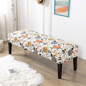 fodera per panca con stampa geometrica di piante, fodera elastica in microfibra, protezione antipolvere per panca