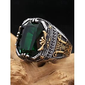anello da uomo in lega con pietre preziose, gioiello vintage gotico con pietra grande, accessorio di moda multicolore, regalo di Natale unico per feste e uso quotidiano