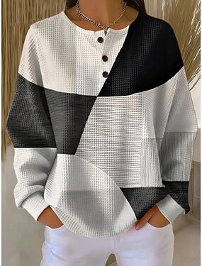 Per donna Felpa Pullover Bottoni Grafico Geometrico Moda Casual Stampa Manica Lunga Girocollo Top Regolari Casuale Casa Lavoro Blu Bianco Giallo Primavera Inverno