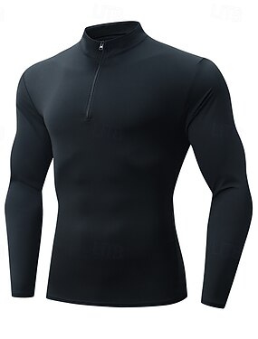 Per uomo Tinta unita T-shirt da corsa Maglia a compressione Maglia da corsa Primavera Autunno Con zip Manica Lunga Asciugatura Rapida Compressione Traspirante Allenamento in Palestra Allenamento