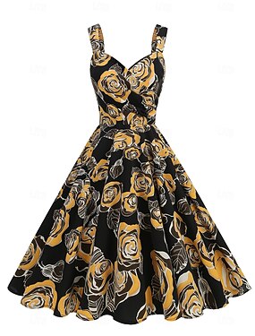 abito da vacanza vintage retrò anni '50 abito svasato costume da donna vintage cosplay casual quotidiano abito a maniche corte in maschera