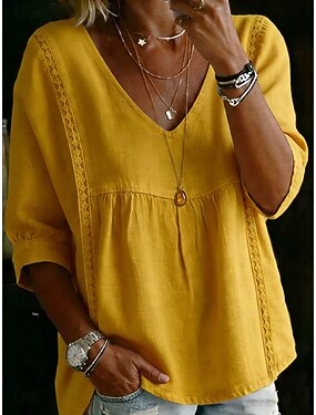 Per donna Blusa Fiocco Tinta unica Vintage Quotidiano Elegante Mezza Manica Scollo a V Top Regolari Quotidiano Blu Nero Bianco Giallo Rosa Estate Primavera