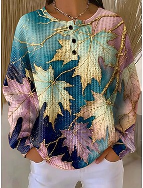 Per donna Felpa Pullover Bottoni Stampato Floreale Grafico Vintage Casual Manica Lunga Girocollo Top Regolari Casuale Streetwear Abbigliamento Quotidiano Blu Giallo Rosa Viola Primavera Autunno