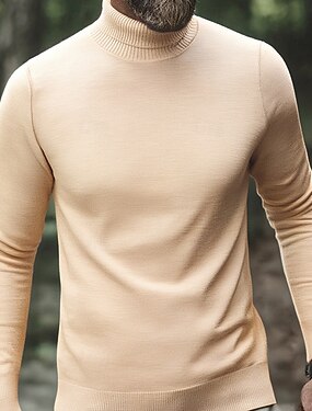 Per uomo Felpa Maglione A Coste Maglia Top Regolari Lavorato a maglia Slim Fit Tinta unica Collo Alto Maglieria Contemporaneo Casuale Abbigliamento quotidiano Abbigliamento Autunno Cammello Nero M L