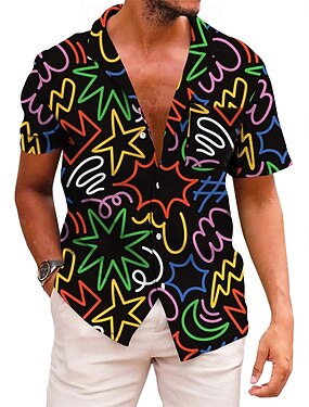 Retrò Vintage Anni '70 Camicia Camicia Aloha Hippie Disco Psichedelico Costume Per uomo Vacanza Feste Parata dell'Orgoglio Adulti Camicia