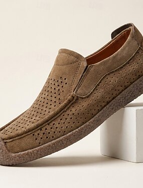 mocassini casual da uomo marroni traforati, leggeri, traspiranti e comodi, ideali per camminare, per l'uso quotidiano, i viaggi, la guida e il tempo libero estivo.