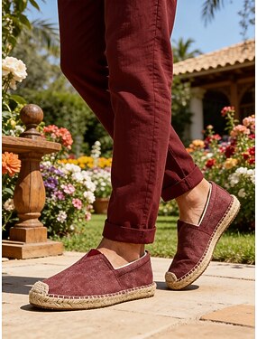 scarpe espadrillas bordeaux da uomo, design slip-on con suola in iuta, casual e comode, perfette per resort all'aperto e fughe rilassate