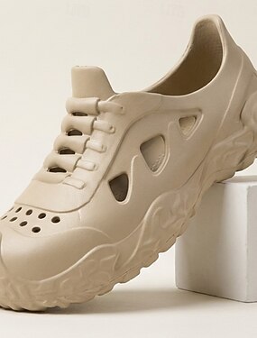 Sneakers casual da uomo beige con ritagli, leggere, traspiranti e comode, scarpe da passeggio alla moda, calzature sportive per l'uso quotidiano, viaggi, tempo libero all'aperto, attività estive e street style