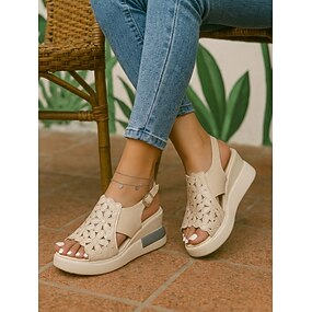 sandali con zeppa da donna con ricami floreali beige - design elegante a punta aperta con cinturino regolabile, perfetti per uscite informali, feste estive e uso quotidiano