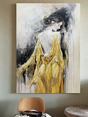grande dipinto astratto di donna, opera d'arte con volto di donna, arte murale originale, ritratto senza volto, arte figurativa su tela, decorazione murale con donna incorniciata