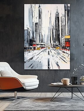 dipinto a olio fatto a mano su tela, decorazione da parete, architettura urbana, street art, astratto per arredamento d'interni, dipinto appeso su telaio teso/dipinto arrotolato senza cornice