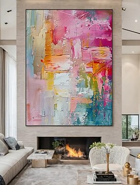 Dipinto a olio fatto a mano su tela, decorazione da parete, moderno, astratto, colorato e vario, dipinto a coltello per soggiorno, arredamento per la casa, dipinto appeso su telaio teso/dipinto