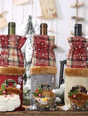 Confezione da 3 copribottiglie di vino natalizi, sacchetti di tela da imballaggio per vino a quadri, portabottiglie di vino rosso e champagne per le feste, decorazioni creative per la tavola di