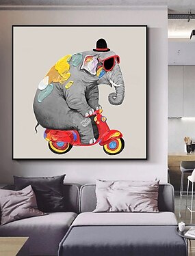 animale pittura a olio impressionista elefante dipinto a mano quadrato pop art tela allungata moderna