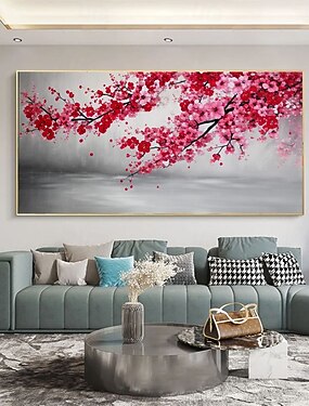 grande dipinto a olio dipinto a mano in stile cinese, dipinto di fiori a inchiostro, dipinto di paesaggi, dipinto di fiori di prugna rosa, regalo di inaugurazione della casa