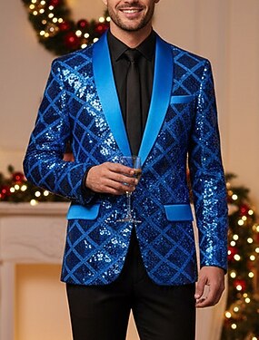 Per uomo Giacca blazer Collo a scialle Festa A quadri Blazer Nero Argento Rosa Vestibilità aderente Monopetto Un Bottone
