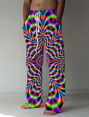 Per uomo Pantaloni Pantaloni estivi Pantaloni da spiaggia Tasche A cordoncino Vita elastica Arcobaleno Stampe astratte Comfort Traspirante Informale Giornaliero Per eventi Streetwear Originale Giallo