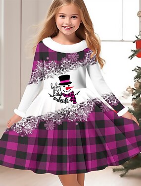 ragazze' 3D A quadri Pupazzo di neve Fiocco di neve Vestito Abito fiocco di neve Manica lunga Stampa 3D Autunno Inverno Da mare Sportivo Giornaliero stile sveglio Informale Bellissimo Bambino 3-12