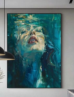 ragazza che nuota, tuffandosi, dipinto a olio, arte murale, dipinto blu, immersioni, arte astratta, immersioni nell'oceano, donna che nuota, mano, tela, arte astratta