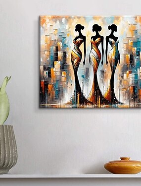 dipinto a olio fatto a mano su tela, decorazione artistica da parete, moderno astratto, tre donne africane per arredamento casa, dipinto appeso su telaio teso / dipinto arrotolato senza cornice