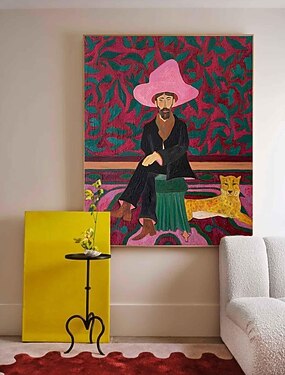 dipinto a olio astratto moderno, elegante e minimalista, fatto a mano, raffigurante un uomo e una donna con cappello, per la decorazione della parete della sala da pranzo, regalo