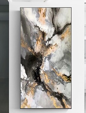 pittura a olio fatta a mano su tela decorazione della parete di arte originale lamina d'oro pittura a colori di flusso pittura di arte astratta per la decorazione domestica con cornice allungata/senza