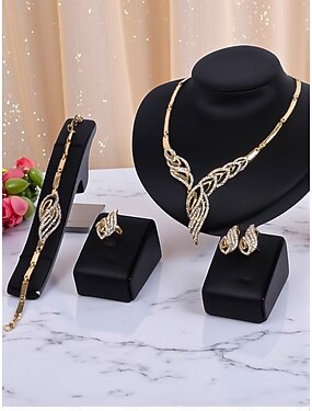 set di gioielli da donna placcati in oro con strass, elegante collana da 4 pezzi, bracciale, orecchini &set di anelli per feste, matrimoni &eventi serali