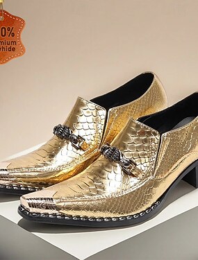 scarpe eleganti da uomo in pelle metallizzata color oro con motivo a pelle di serpente, punta quadrata e dettaglio fibbia - perfette per matrimoni, feste e altri eventi speciali