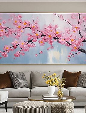 dipinto fatto a mano di fiori di ciliegio rosa in fiore, dipinto a mano 3d, paesaggio floreale, arte primaverile, texture floreale, arte murale, dipinto astratto di cime di alberi, regalo