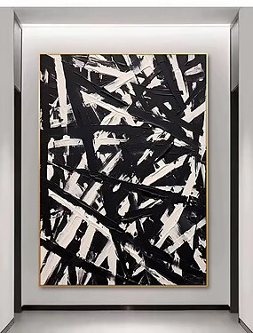 dipinto a olio fatto a mano su tela, decorazione da parete, astratto in bianco e nero per la casa, dipinto appeso su telaio teso/dipinto arrotolato senza cornice