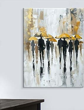 dipinto a olio fatto a mano su tela decorazione murale arte di strada astratta pedoni con ombrelli sotto la pioggia per arredamento casa dipinto arrotolato senza cornice non allungato
