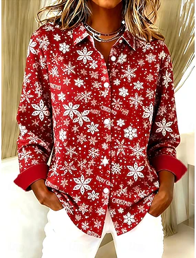 Camicia da donna di Natale blusa grafica geometrica a quadri vintage classica casual maniche lunghe colletto top regolari quotidiani patchwork bottoni stampa gialla rossa verde estate primavera