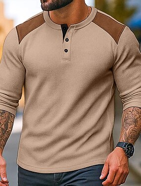 Per uomo Maglia Henley a nido d'ape Maglietta Manica Lunga Henley Primavera & Autunno Tutte le stagioni Blocco di colori Moda Designer Essenziale Blocco di colore Vacanza Streetwear Casuale Nero