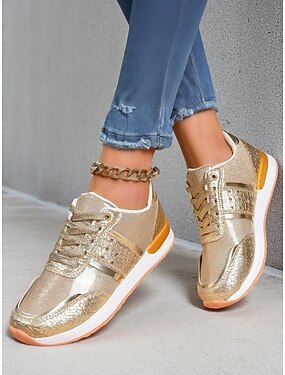 scarpe da ginnastica da donna color oro metallizzato: comode e leggere per l'uso quotidiano e per le passeggiate