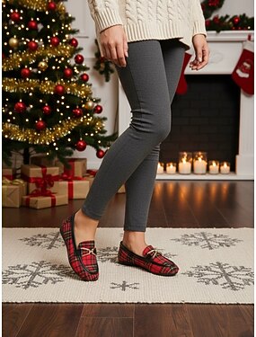 scarpe slip-on a quadri da donna: comode scarpe casual per le feste, perfette per Natale, riunioni invernali e relax festivo