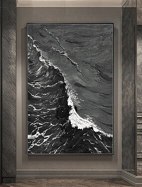 dipinto a olio fatto a mano, onda grigia bianca, arte murale, dipinto a olio moderno, astratto moderno, onda oceanica, paesaggio marino, decorazione per la casa, arte murale, tela arrotolata
