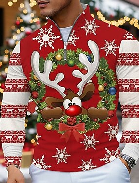 Natale Per uomo Ogni Polo Manica Lunga Magliette polo Colletto alla coreana Casual Ferie Abbigliamento quotidiano Abito da festa Stampa 3D Polo con cerniera a un quarto Primavera Autunno Inverno Nero