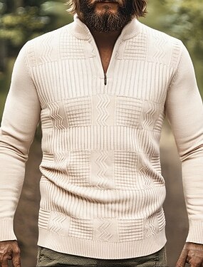 Per uomo Maglietta Waffle Maglietta Maglietta con Zip a Quarti Manica Lunga Collo alla coreana Autunno Inverno Primavera & Autunno Tinta unica A quadri Maglieria Quotidiano Casual Con zip Casuale
