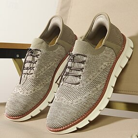 scarpe da ginnastica Oxford traspiranti da uomo in maglia – scarpe casual leggere con finiture in pelle di vacchetta per camminare, indossare ogni giorno e viaggiare