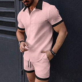 Per uomo Completi T-shirt Outfit 2 pezzi Maglietta e pantaloncini Manica Corta Bavero Estate Semplice Moda Casual Patchwork 2 Pezzi Jacquard Vacanza Abbigliamento quotidiano Uscire Nero Bianco Rosa