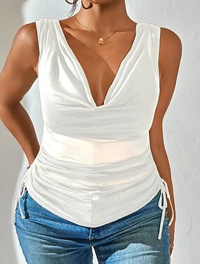 Per donna Camicia Elegant Top in raso Top estivi Arricciato Patchwork Drappeggiato Tinta unica Semplice Elegante Vintage Signore Senza Maniche Collo Alto Top Regolari Quotidiano Lavoro Ferie Albicocca