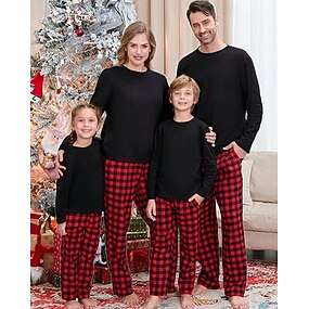 Famiglia Natale Pigiama di Natale per Famiglia Pigiama Set famiglia Plaid Casa Stampato Rosso Manica Lunga Quotidiano Abiti coordinati