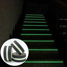 1 rotolo di nastro di trazione antiscivolo con adesivo abrasivo a striscia verde scuro per gradini di scale interne ed esterne che si illuminano al buio