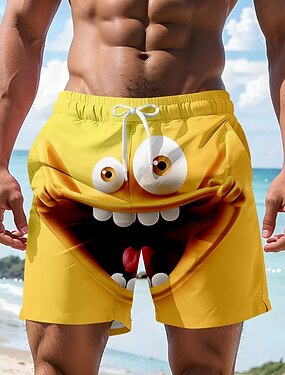Per uomo Illusione ottica Fantasia "Cartone 3D" Faccia Sorridente Costumi da bagno Pantaloncini da mare Pantaloncini da Surf Misura del girovita medio Hawaiano Divertente Vacanza al Mare Tasche