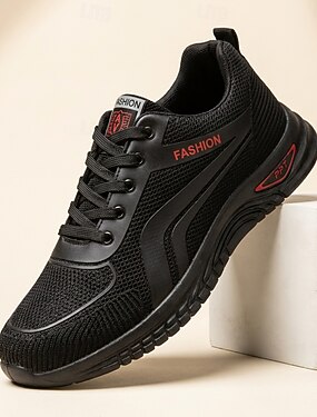 Scarpe da ginnastica sportive da uomo nere in maglia, leggere, traspiranti, con lacci, ideali per camminare e correre, per allenamenti in palestra, jogging, viaggi e per l'uso quotidiano.